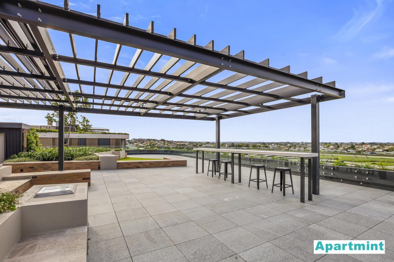 • Rooftop entertainment terraces with BBQs, ice machine, and dining areas overlooking the racecourse.
